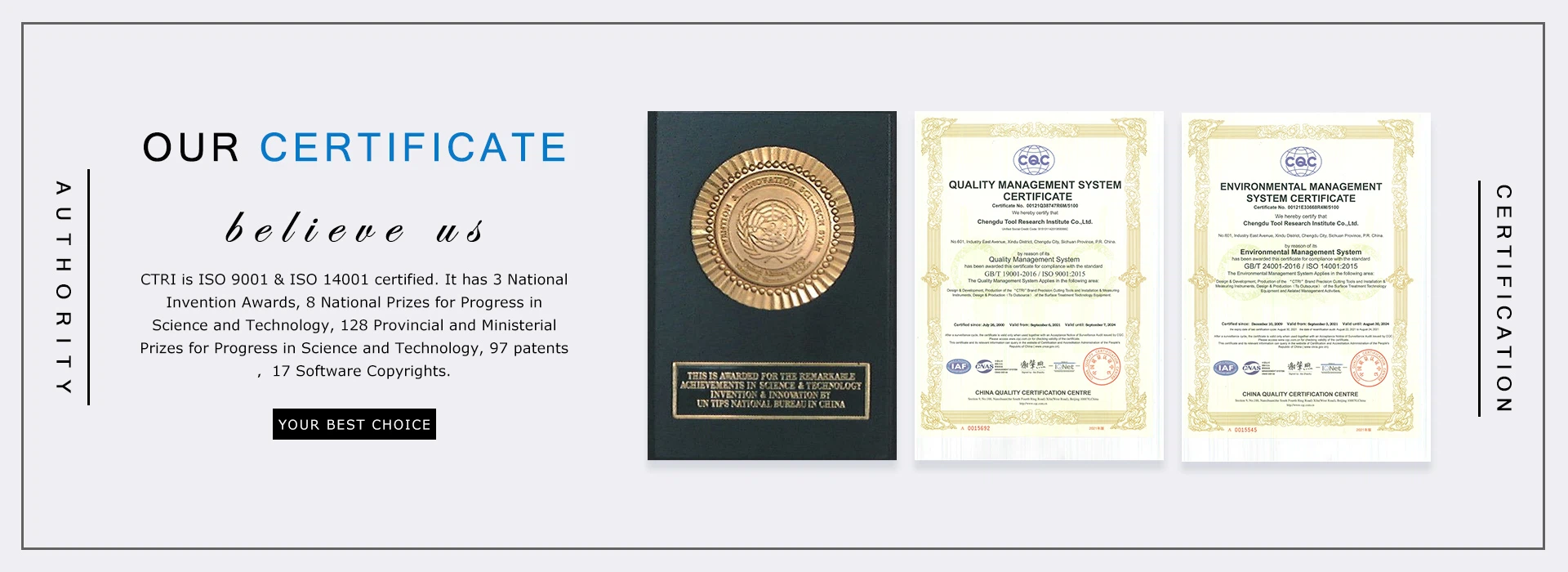 - ◎ CTRI is ISO 9001 ISO 14001 certified.